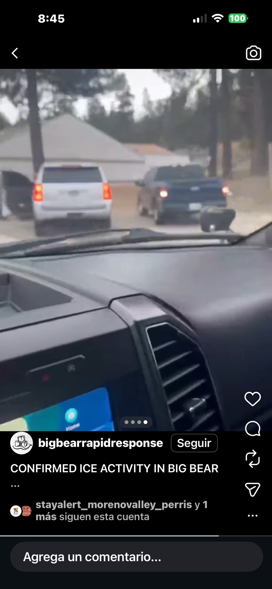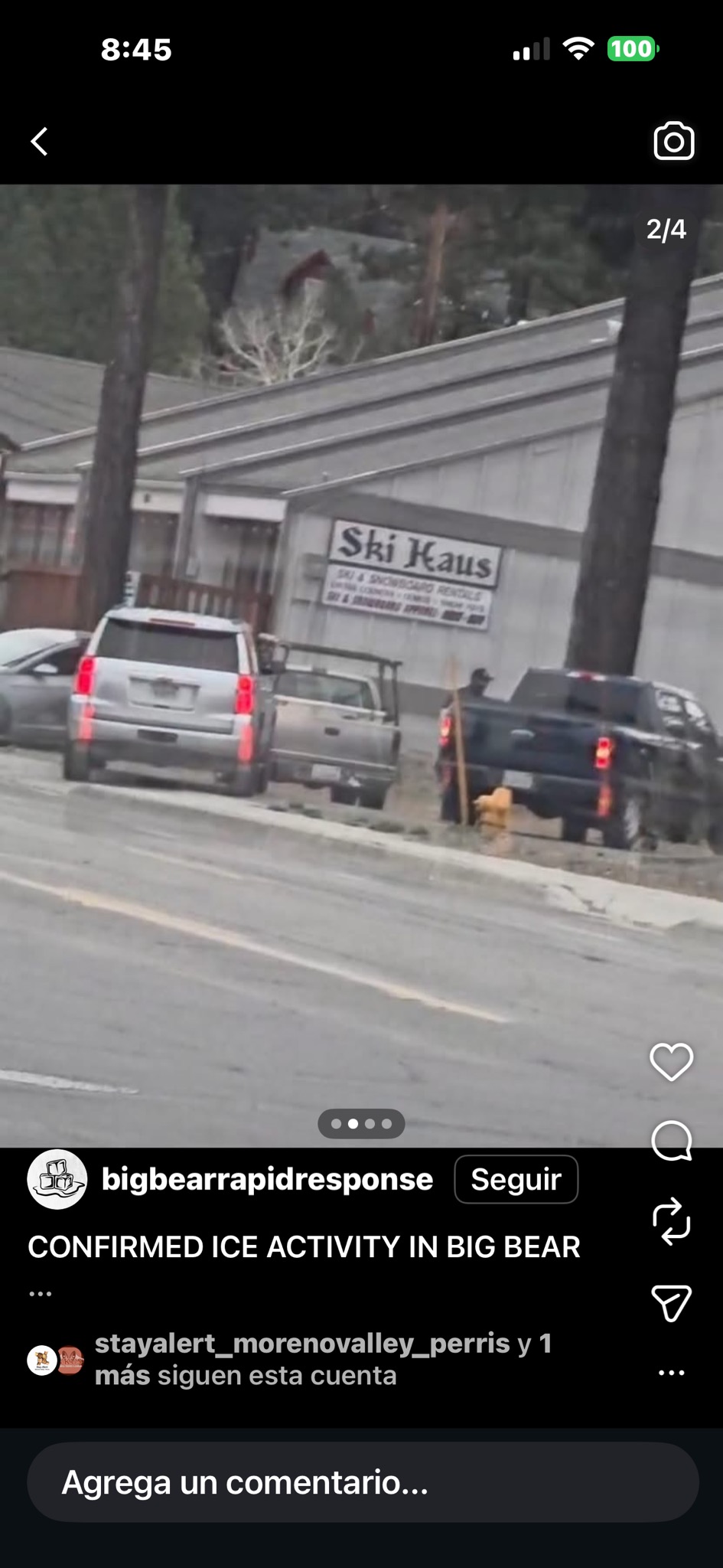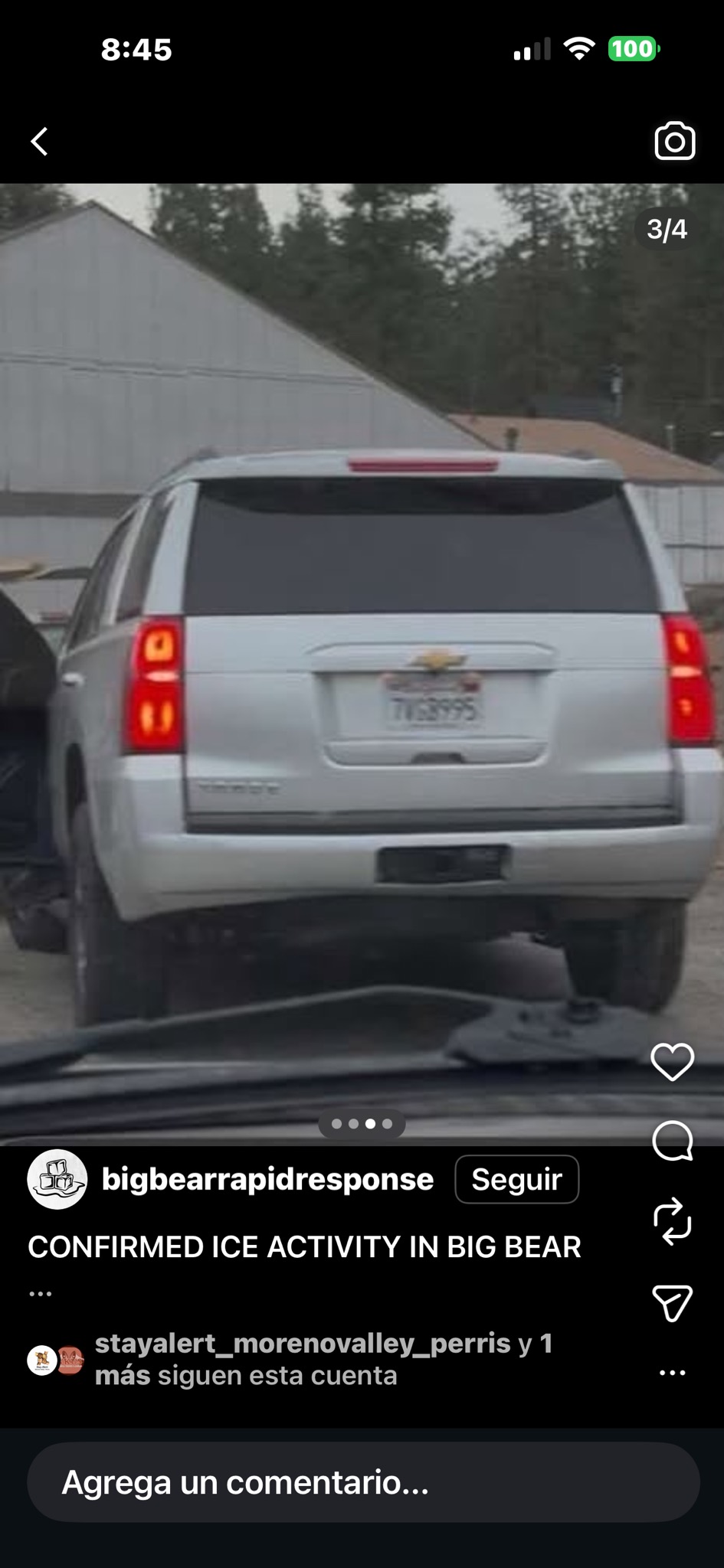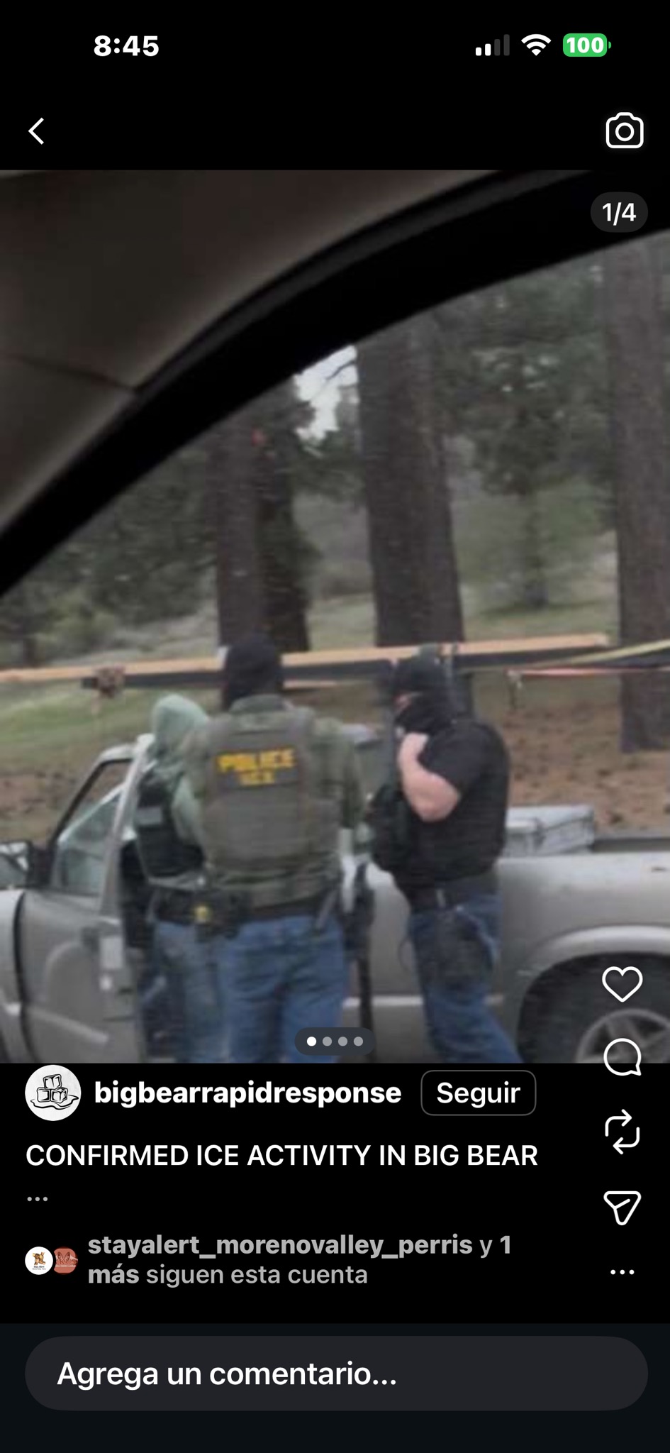 ice agents spotten in big bear 8:30am. transport van also spotted. community members mentioned the van may be headed tow ..