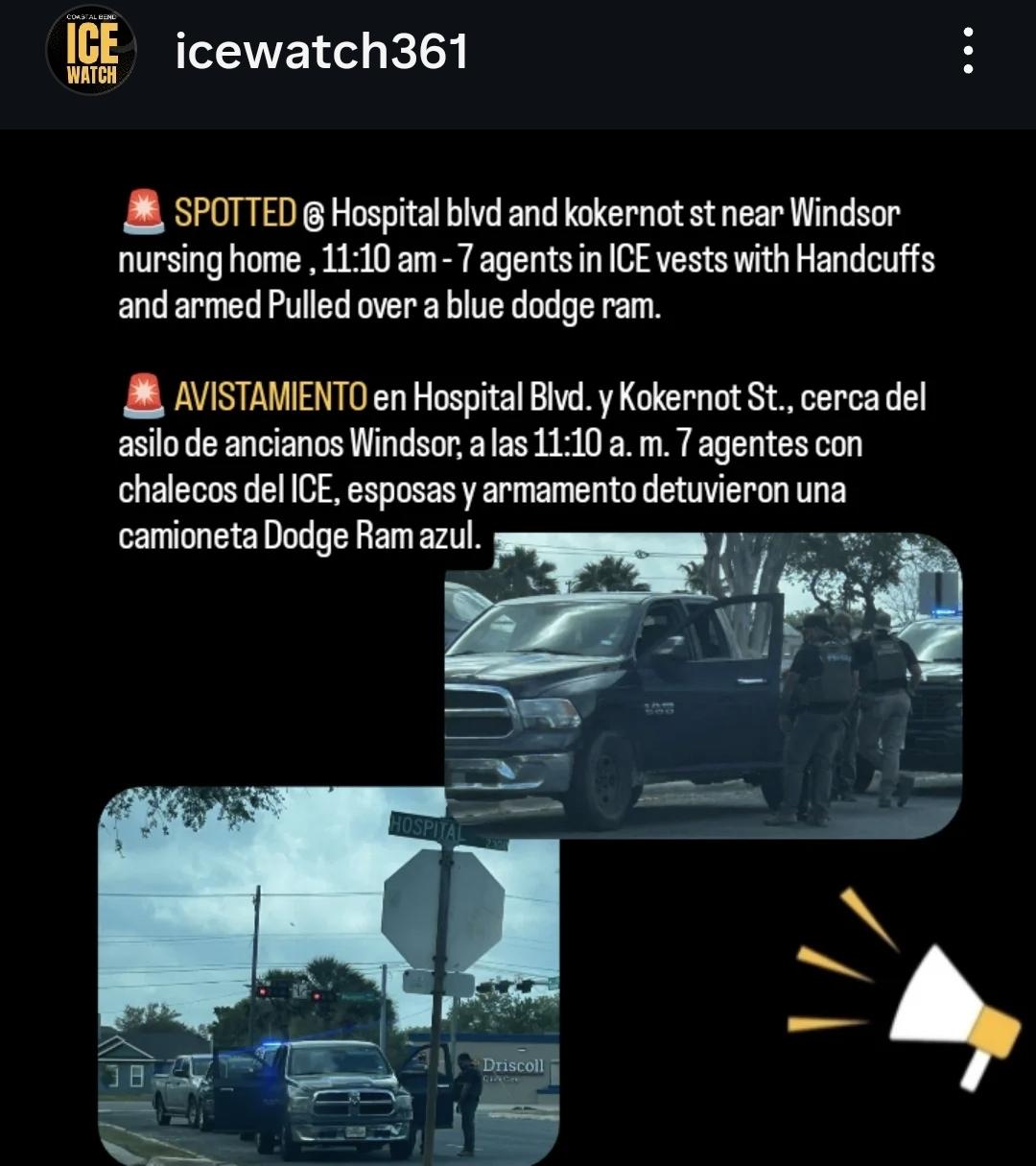 ice detained someone at the hospital at kokernot - instagram.com/icewatch361 ..