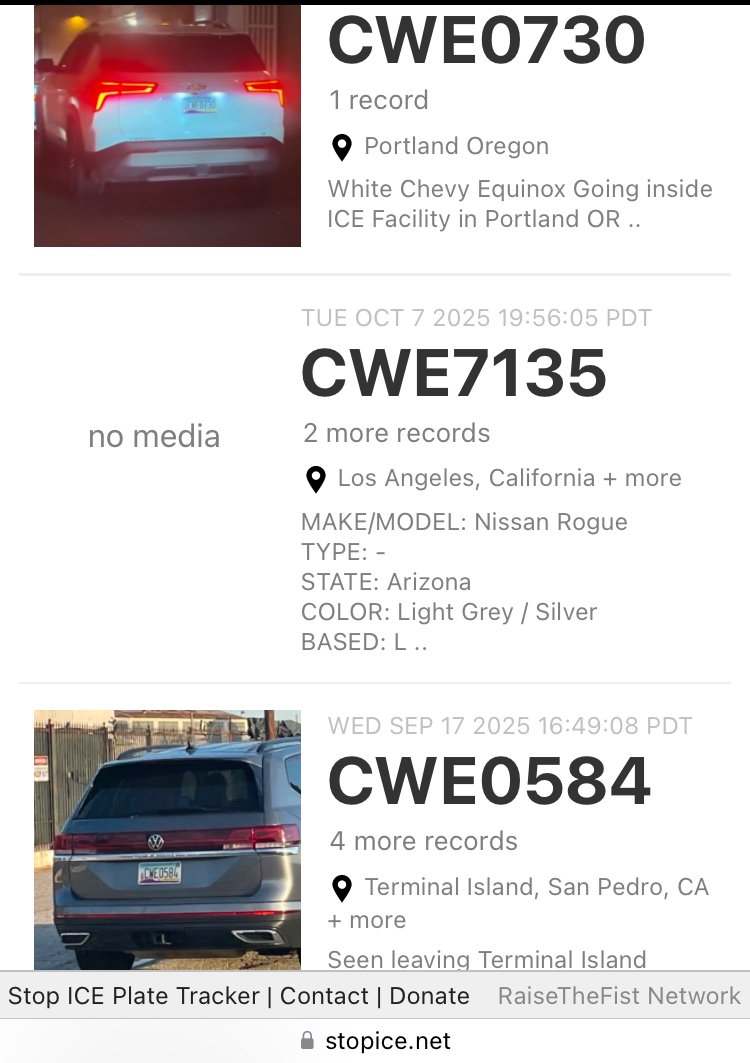 sighting. suspected ice. two unmarked vehicles, one is a decommissioned law enforcement vehicle. two officers. white mal ..